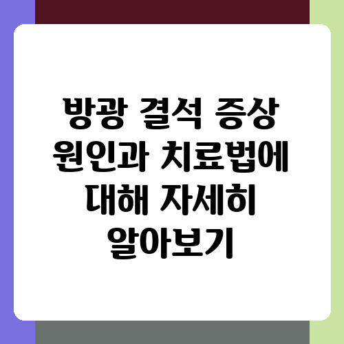 방광에 돌이 생긴다면 얼마나 고통스러울까요? 상상만 해도 끔찍하죠. 방광결석은 소변으로 배출되지 못하고 방광 내에 남아 있는 결정체로, 심한 통증과 함께 다양한 증상을 유발합니다. 이 글에서는 방광결석의 원인부터 증상, 그리고 효과적인 치료법까지 자세히 알아보고, 여러분의 건강을 지키는 데 도움이 되는 정보를 제공하고자 합니다. 방광결석으로 고통받는 분들에게 실질적인 도움이 되길 바라면서, 함께 알아볼까요?