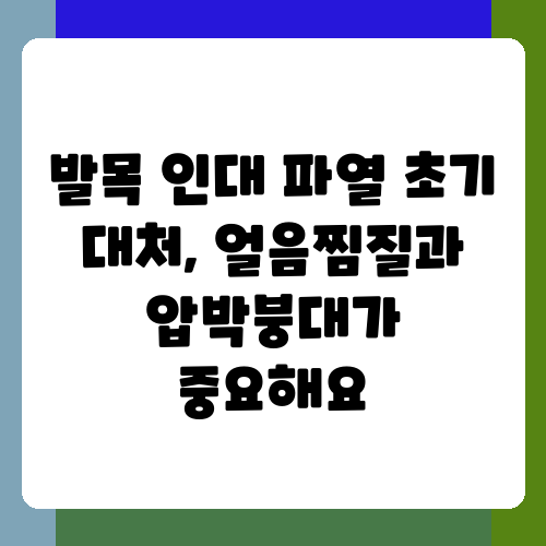발목 인대 파열이 의심될 때 가장 중요한 것은 초기 대처입니다. 심한 통증과 붓기 때문에 당황스럽겠지만, 우선 발목에 무리가 가지 않도록 안정을 취해야 해요. 가장 먼저 해야 할 일은 RICE 원칙을 기억하는 겁니다. RICE 원칙은 Rest(휴식), Ice(냉찜질), Compression(압박), Elevation(거상)을 의미하는데요. 발목에 무리가 가지 않도록 휴식을 취하고, 붓기를 가라앉히기 위해 얼음찜질을 20분 간격으로 해주는 게 좋습니다. 또한 압박붕대를 감아 붓기를 최소화하고, 다리를 심장보다 높이 올려 혈액순환을 원활하게 해주는 것도 잊지 마세요. 붓기가 심하거나 통증이 심한 경우에는 병원을 방문하여 정확한 진단과 치료를 받아야 합니다. 초기 대처가 잘못되면 회복 시간이 더 길어질 수 있으니, 절대 방치하지 말고 적극적으로 대처하는 것이 중요해요. 저는 발목을 삐끗했을 때, 냉찜질과 압박붕대를 제대로 하지 않아서 회복 기간이 더 길어졌던 경험이 있답니다.