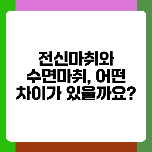 수술을 앞두고 가장 걱정되는 부분 중 하나가 마취일 거예요. 전신마취와 수면마취, 두 가지 종류가 있는데 어떤 차이가 있고 어떤 마취가 나에게 더 안전할지 고민이 많으시죠? 이 글에서는 전신마취와 수면마취의 차이점과 안전성을 비교하고, 수술 선택에 도움이 되는 정보를 제공해 드리려고 합니다. 함께 알아보도록 해요!