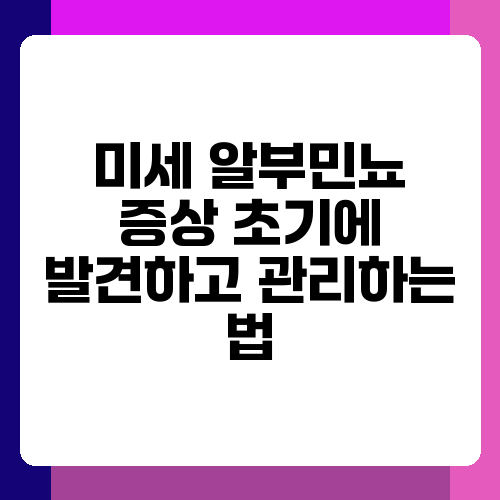 미세 알부민뇨는 무서운 질병이 아니지만, 방치하면 신장 건강에 심각한 문제를 야기할 수 있습니다. 정기적인 건강 검진을 통해 조기에 발견하고, 생활 습관 개선과 전문가의 도움을 통해 꾸준히 관리한다면 충분히 건강하게 생활할 수 있습니다. 오늘부터 건강한 생활 습관을 실천하고, 정기적인 검진을 통해 건강을 지켜나가세요. 건강은 스스로 지키는 것이 가장 중요합니다! 궁금한 점이나 추가적인 정보가 필요하시면 언제든지 전문의와 상담하시기 바랍니다.
