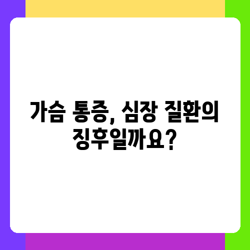 가슴 통증이 심장 질환의 신호일 수 있다는 생각에 긴장하시는 분들이 많습니다. 심장 질환으로 인한 가슴 통증은 보통 압박감, 꽉 죄이는 느낌, 짓눌리는 느낌과 함께 나타나요. 가슴 중앙 부위에서 시작하여 팔, 목, 턱, 등으로 퍼져나가는 특징도 있습니다. 숨이 차거나 메슥거림, 식은땀, 어지럼증 등의 증상이 동반될 수도 있고요. 심장 질환으로 의심되는 가슴 통증은 즉시 병원을 방문하여 진료받는 것이 중요합니다. 만약 갑작스럽고 심한 가슴 통증이 발생하면 응급실로 바로 가셔야 해요. 심장 질환은 생명과 직결될 수 있기 때문에 속단하지 말고 전문의의 진단을 받는 것이 최선입니다. 혹시 가족력이 있거나 평소 고혈압, 고지혈증, 당뇨병 등의 질환을 가지고 있다면 더욱 주의해야 합니다. 자신의 건강 상태를 정확하게 파악하고 필요한 조치를 취하는 것이 중요해요.
