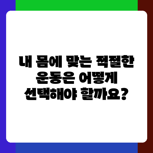 내 몸에 맞는 적절한 운동은 어떻게 선택해야 할까요?