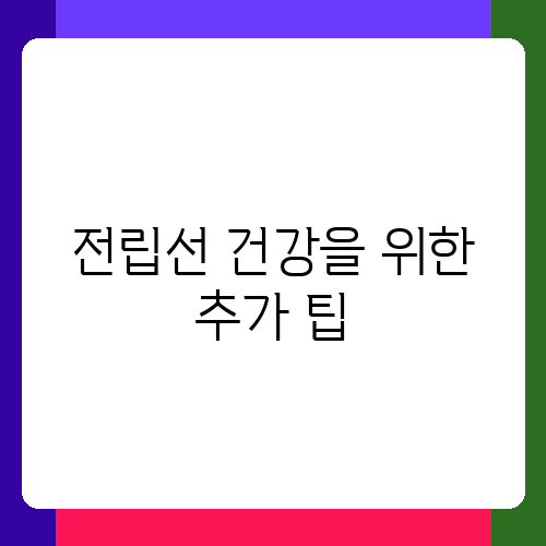 지금까지 전립선에 좋지 않은 음식과 좋은 음식, 그리고 건강 검진의 중요성에 대해 알아보았습니다. 하지만 이 외에도 전립선 건강을 위해 몇 가지 더 추가적인 팁을 드리고 싶습니다. 충분한 수분 섭취는 전립선 건강에 매우 중요합니다. 하루에 8잔 이상의 물을 마시는 것이 좋으며, 카페인이 많이 함유된 음료는 피하는 것이 좋습니다. 또한, 규칙적인 운동과 스트레스 관리도 전립선 건강에 도움이 됩니다. 적당한 운동은 전립선 건강을 유지하는 데 도움을 주고, 스트레스는 전립선 질환의 위험을 증가시키므로, 스트레스 해소를 위한 노력도 중요합니다. 그리고 마지막으로, 긍정적인 마음가짐과 건강한 생활 습관 유지가 전립선 건강을 지키는 가장 중요한 요소라고 생각합니다. 오늘 알려드린 정보들을 잘 활용하셔서 건강한 전립선을 유지하시길 바랍니다. 궁금한 점이 있으시면 언제든지 질문해주세요!