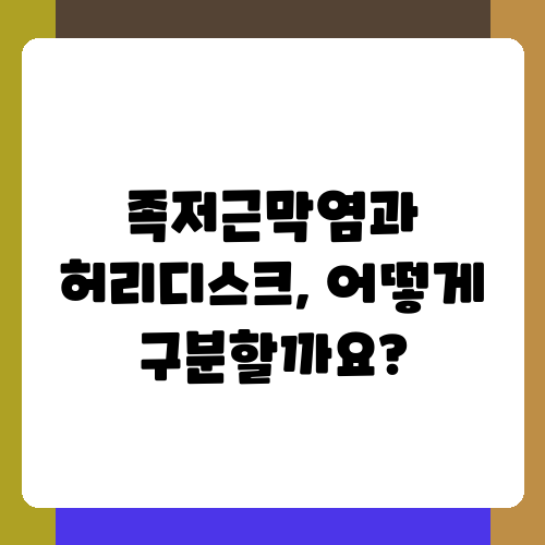 족저근막염과 허리디스크는 증상이 겹치는 부분이 있어 구분이 어려울 수 있습니다. 하지만 몇 가지 차이점을 통해 구분할 수 있습니다. 족저근막염은 주로 발뒤꿈치와 발바닥에 국한된 통증을 보이는 반면, 허리디스크는 허리에서 다리, 발까지 뻗어나가는 방사통을 보이는 경향이 있습니다. 또한, 족저근막염은 아침에 일어났을 때 통증이 심하고, 활동 후 통증이 더 심해지는 특징이 있는 반면, 허리디스크는 자세 변화나 움직임에 따라 통증의 정도가 달라집니다. 하지만 이러한 차이점만으로는 정확한 진단을 내리기 어렵기 때문에, 전문의의 진찰을 받는 것이 가장 중요합니다. 정확한 진단을 통해 적절한 치료를 받는 것이 빠른 회복에 도움이 될 거예요.